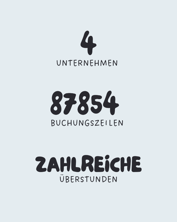MANGELNDE STANDARDISIERUNG ÜBER ALLE GESELLSCHAFTEN | Über die vier Unternehmen hinweg fehlten einheitliche Strukturen – zum Beispiel bei Kontenplänen oder internen Abläufen. Das erschwerte Abstimmungen, erzeugte Mehraufwand und verhinderte eine gemeinsame, effiziente Prozesslandschaft. |